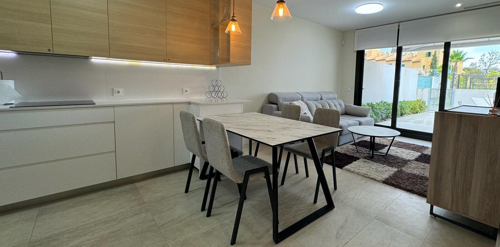 A diferencia de los apartamentos convencionales, esta propiedad se distingue por su espectacular terraza de 40 m2, un escenario privado donde los atardeceres de la Costa Blanca se convierten en su ritual diario. En su interior, la arquitectura fluye a través de: