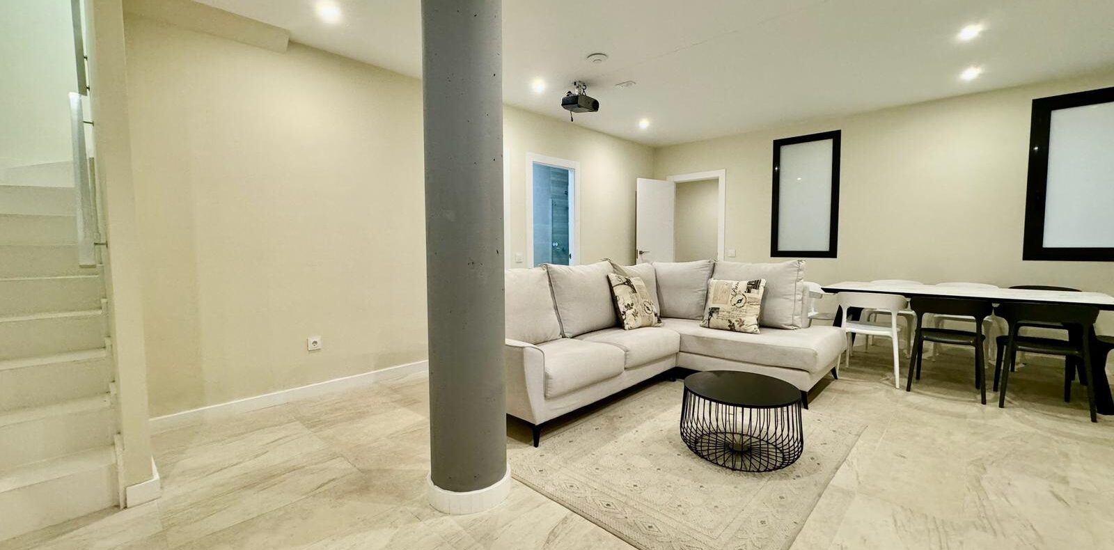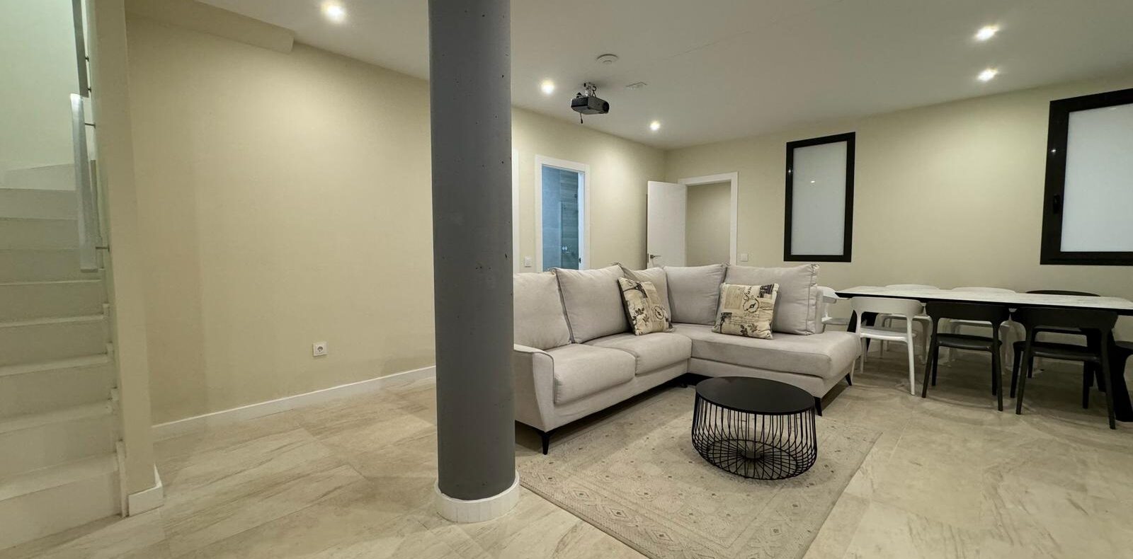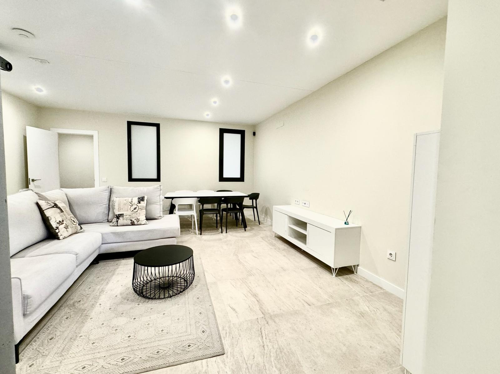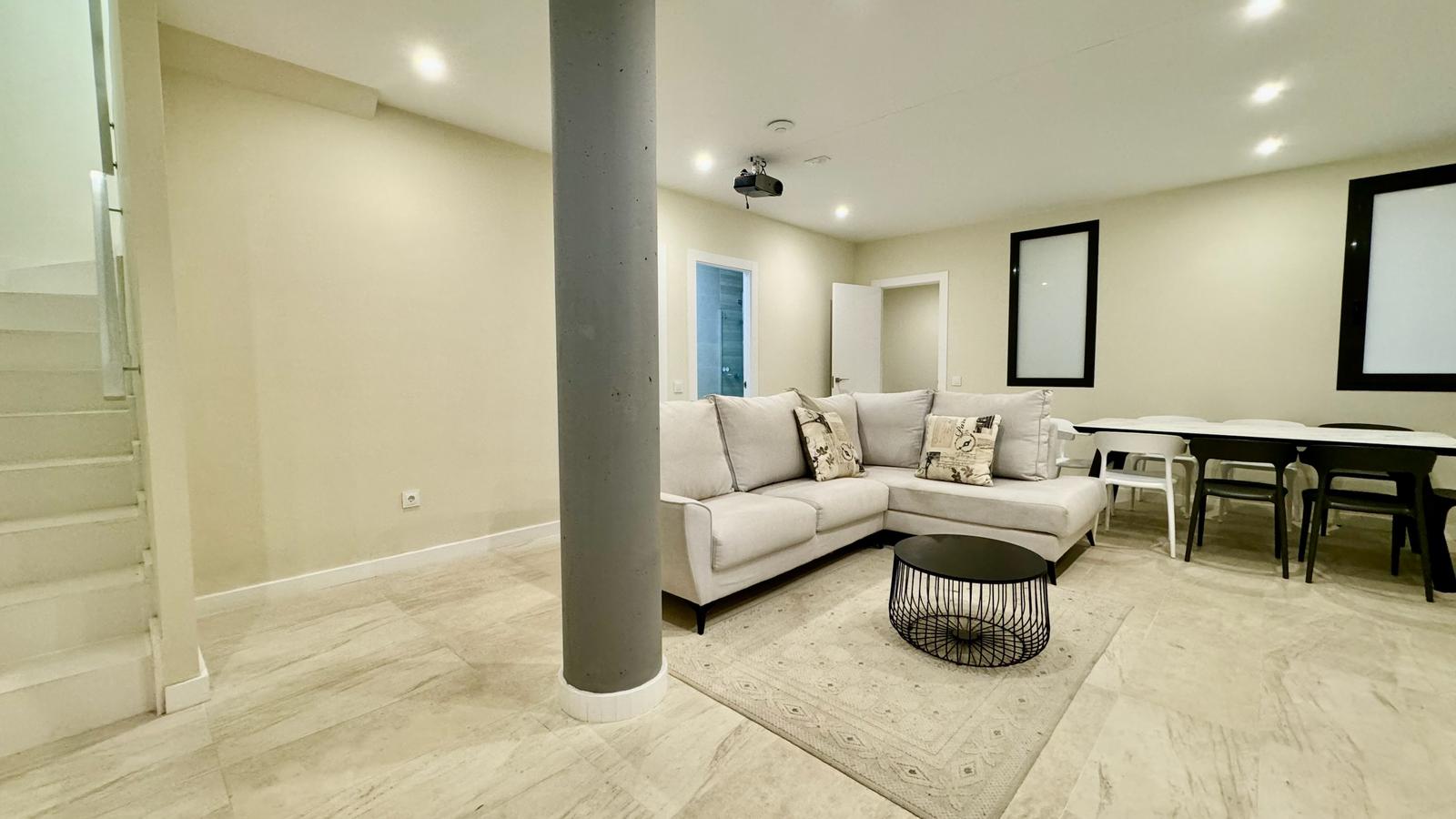 Cocina de alta gama, equipamiento moderno y un patio inglés que aporta un toque distintivo de diseño arquitectónico.
