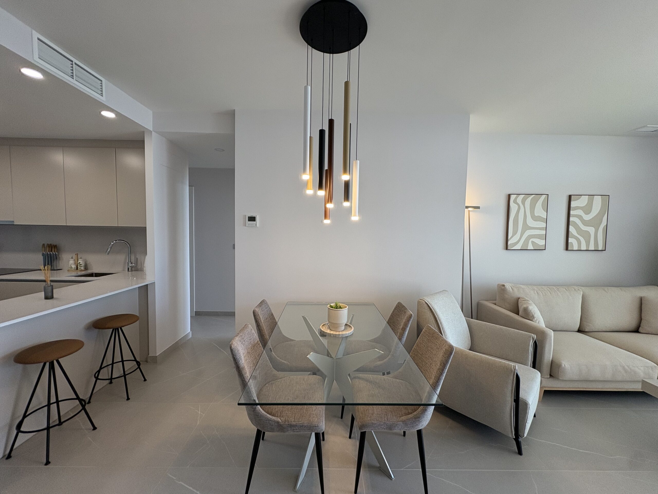 La propiedad cuenta con 2 dormitorios y 2 baños completos, ofreciendo un espacio cómodo y funcional para familias o parejas. El apartamento dispone de una agradable terraza privada con impresionantes vistas panorámicas al mar, el lugar perfecto para relajarse y disfrutar del clima de la Costa Blanca durante todo el año.