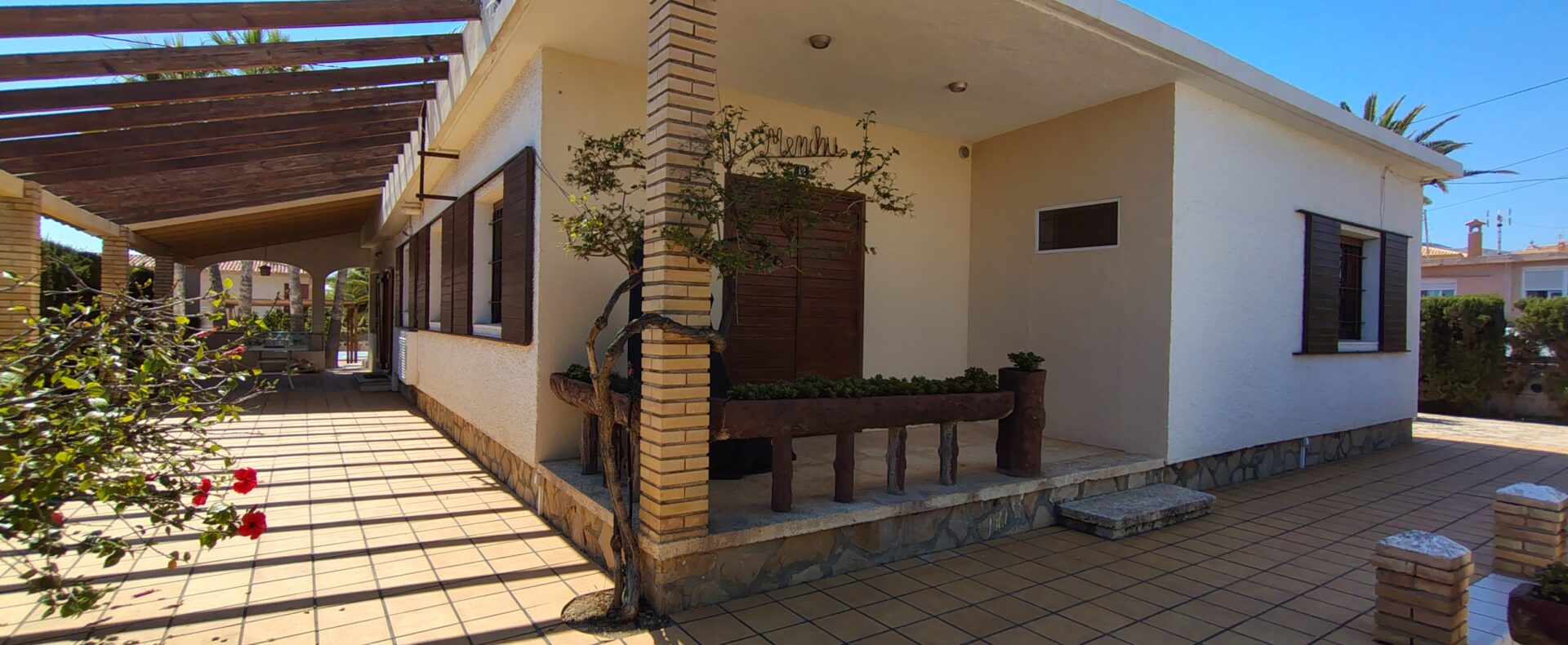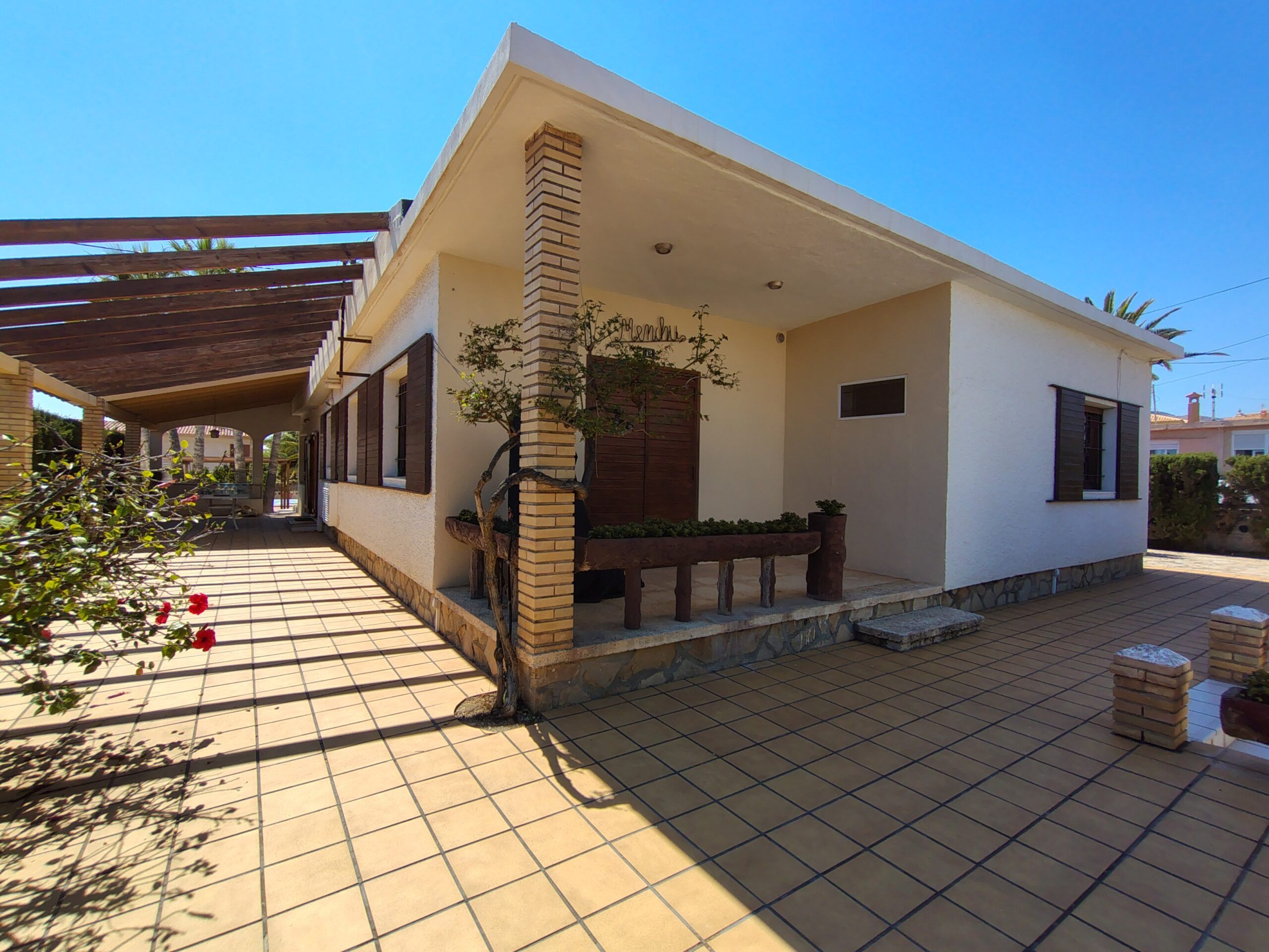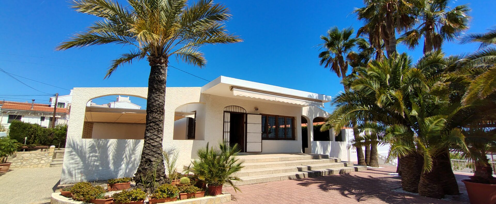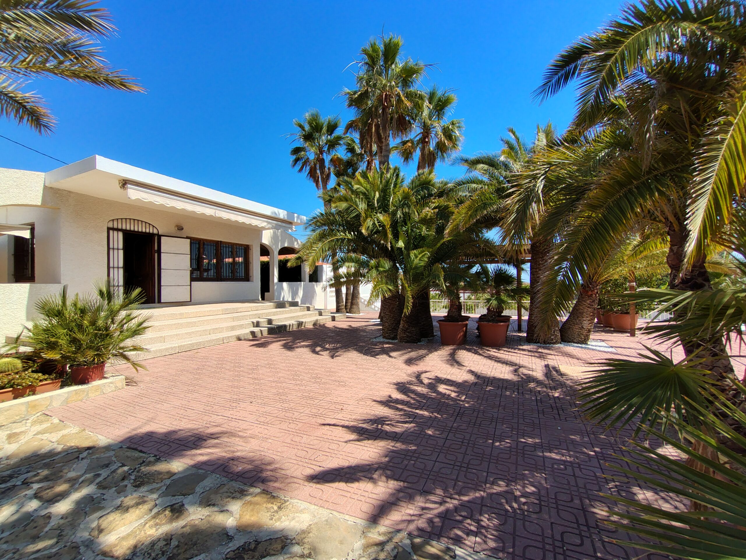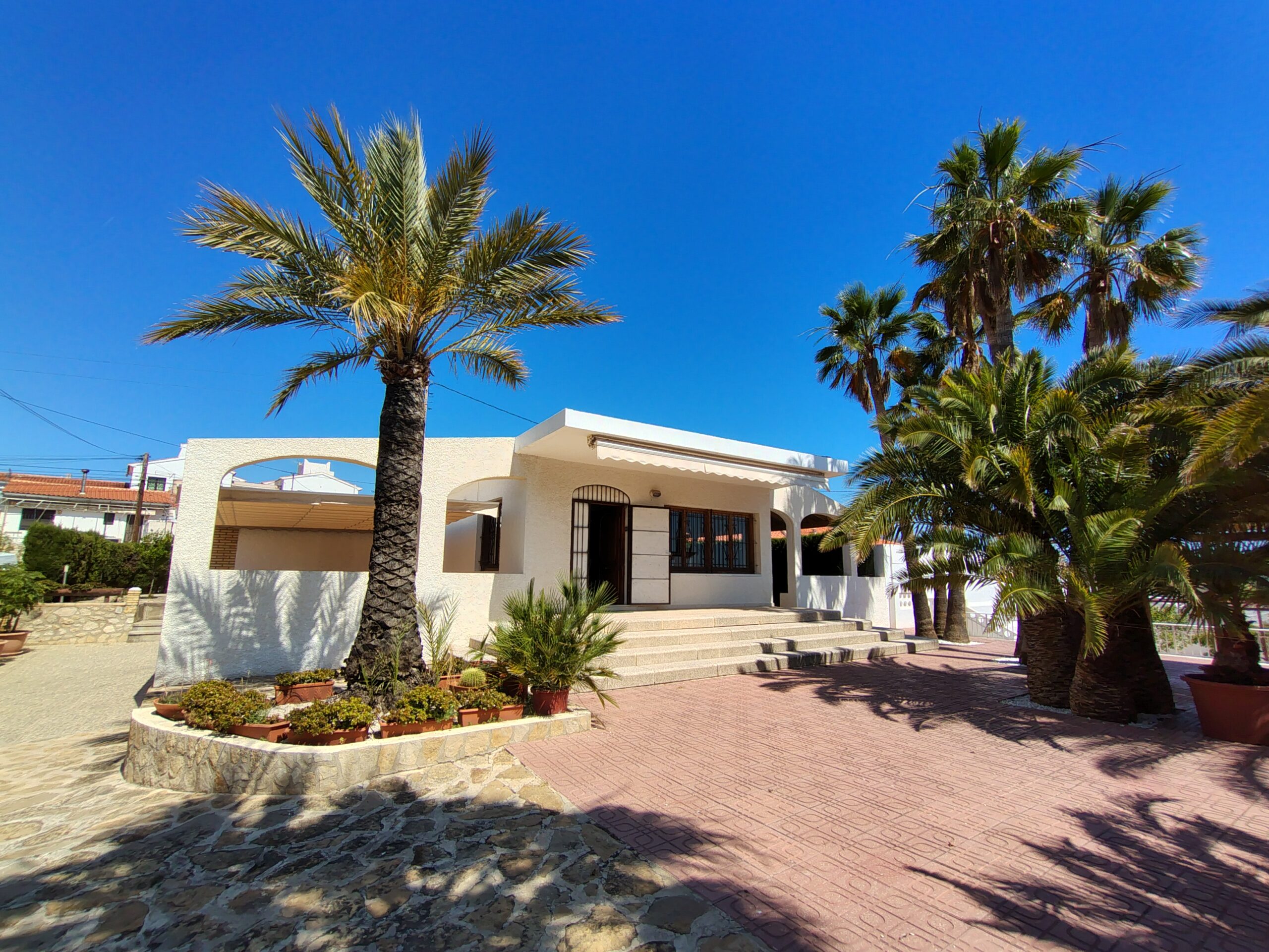 Exclusiva casa de estilo mediterráneo, situada a solo unos pasos de las calas Estudiantes y Varadero. Ubicada en una gran parcela con jardín privado, piscina rodeada de palmeras, zona de barbacoa, pérgola y aparcamiento para tres vehículos.