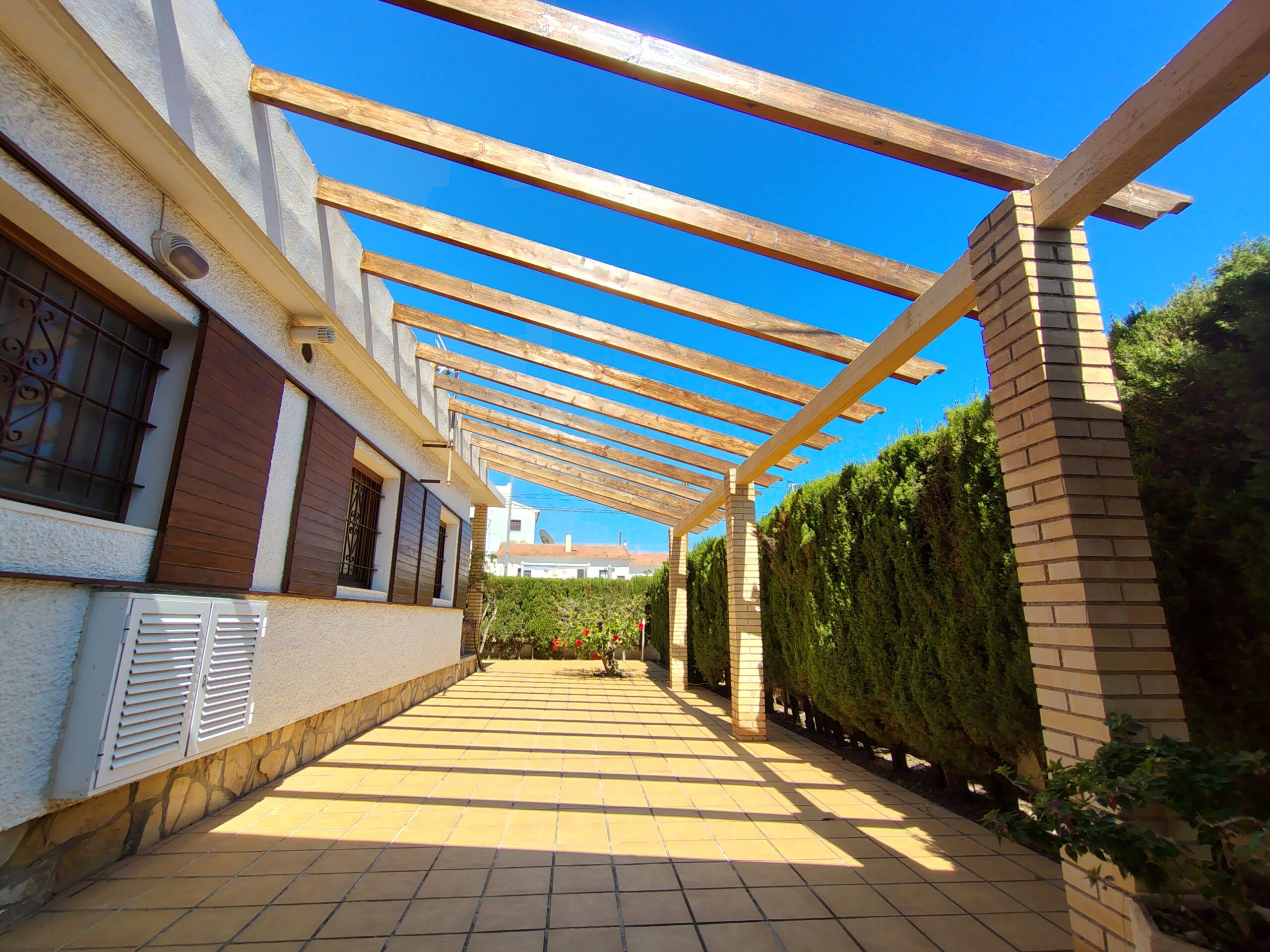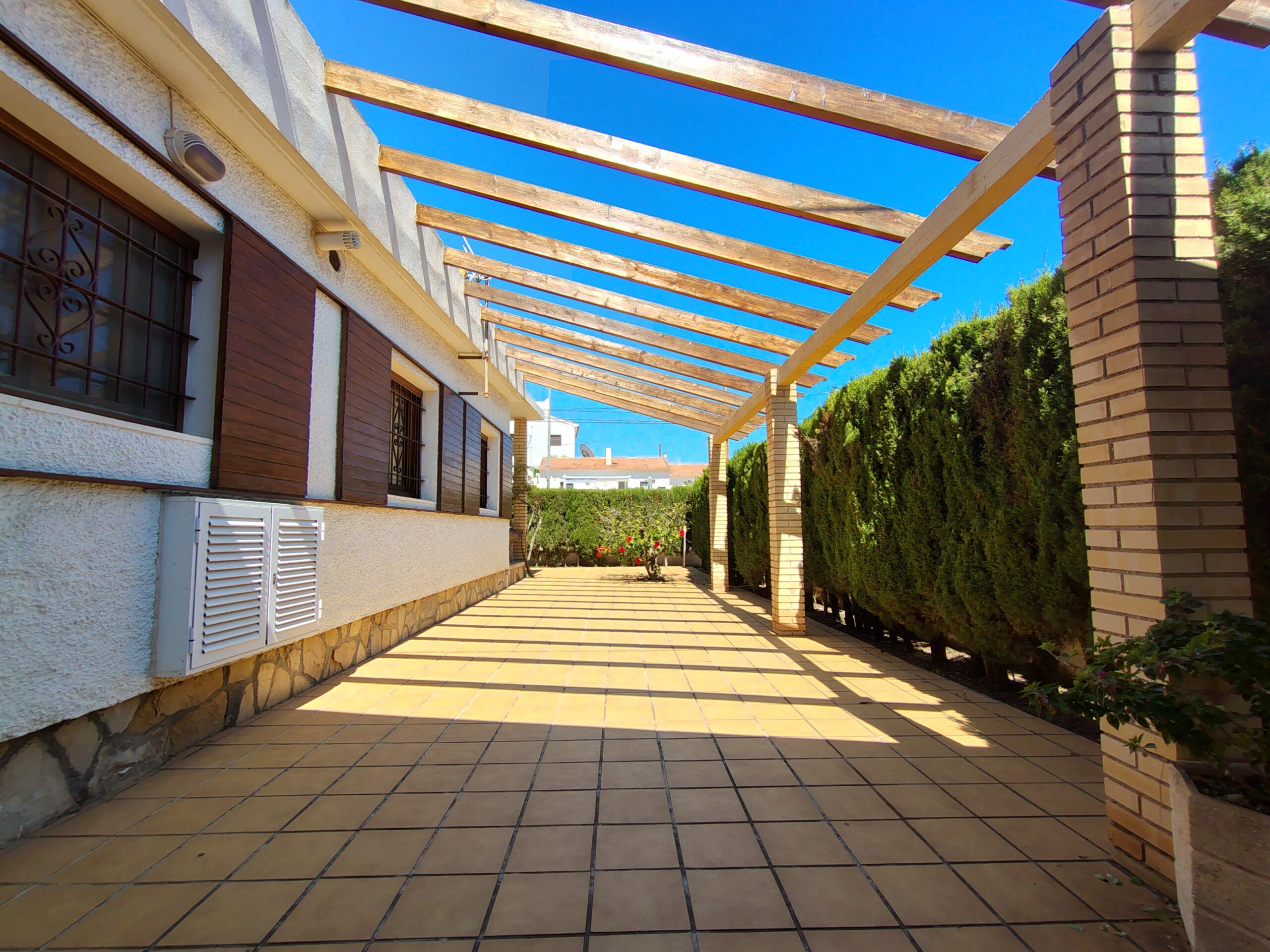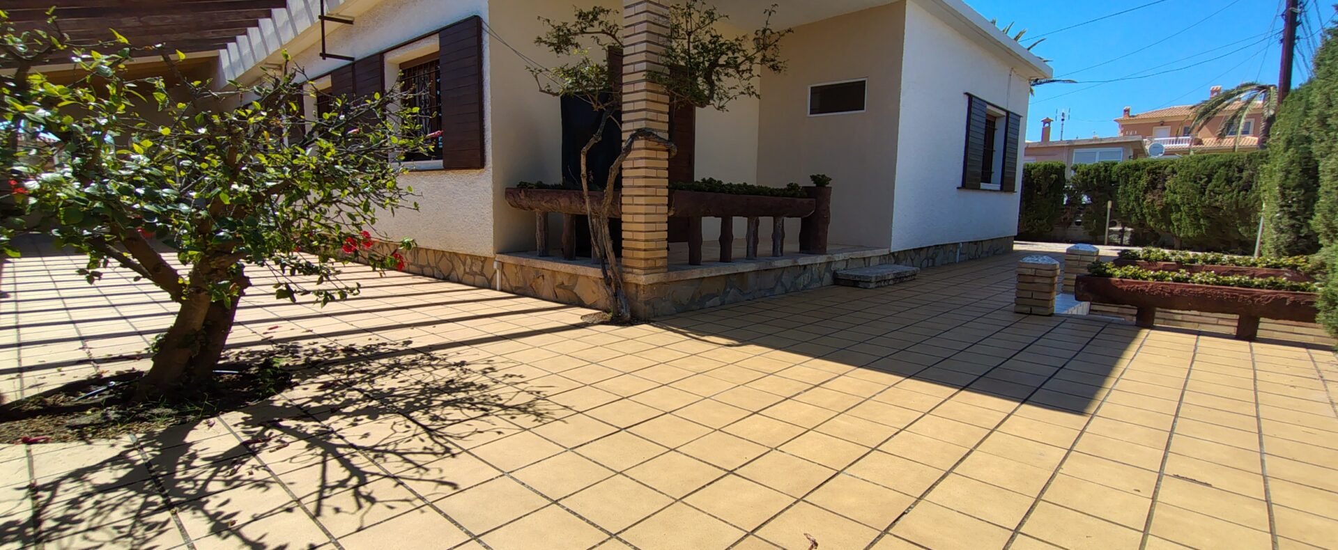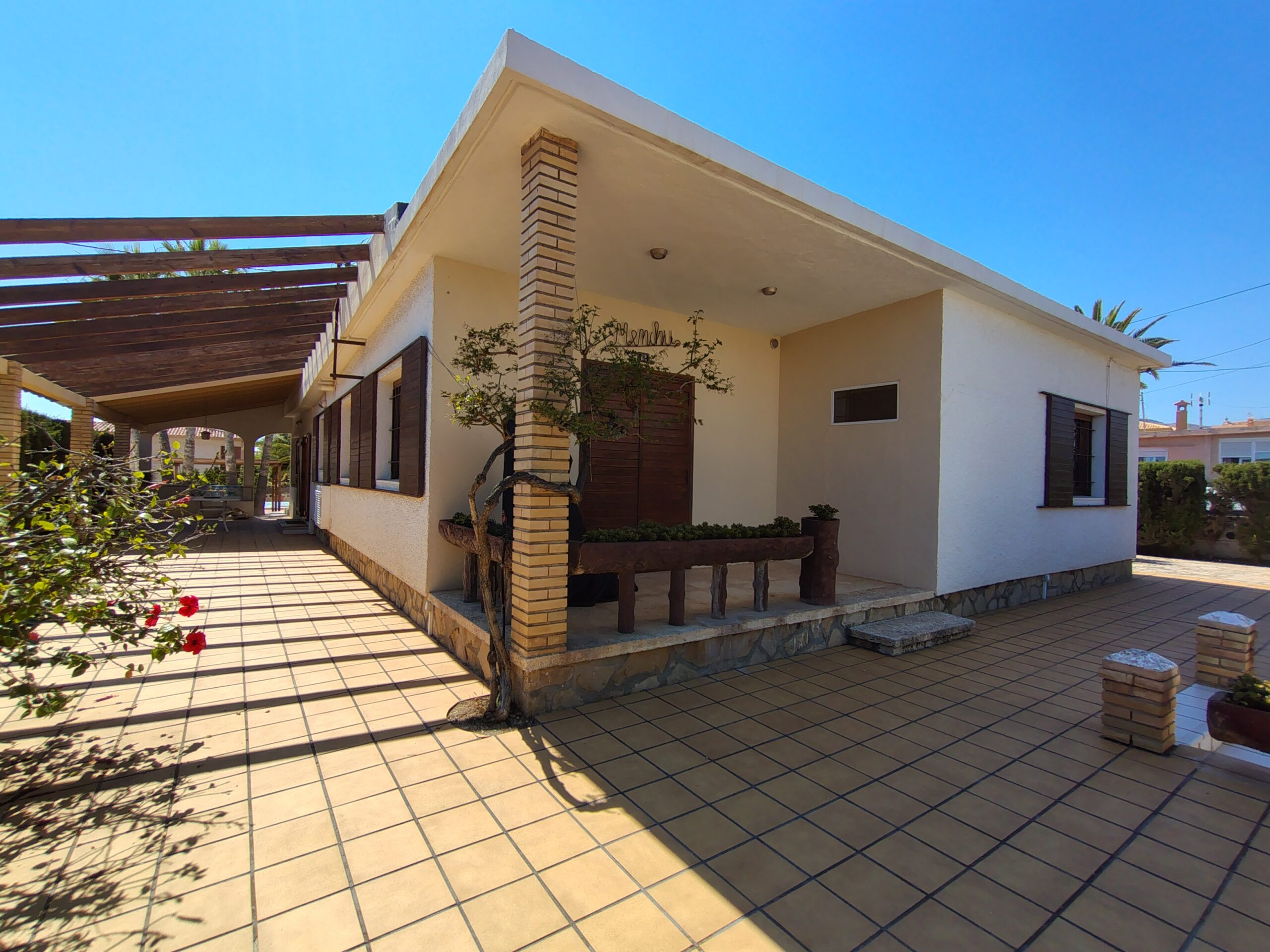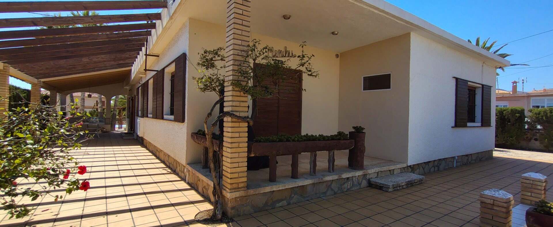 Exclusiva casa de estilo mediterráneo, situada a solo unos pasos de las calas Estudiantes y Varadero. Ubicada en una gran parcela con jardín privado, piscina rodeada de palmeras, zona de barbacoa, pérgola y aparcamiento para tres vehículos.