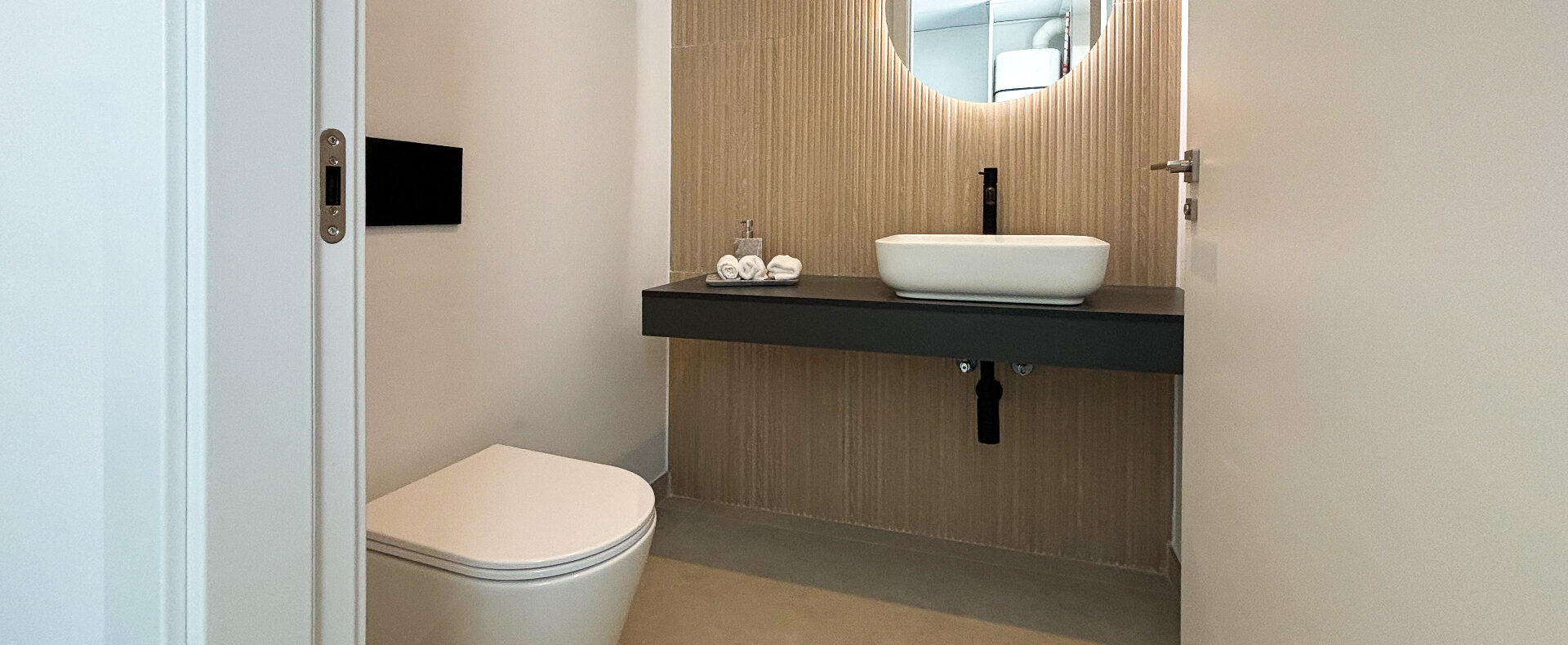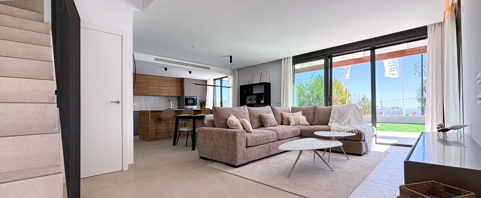 Virtuvėje yra visiškai įrengta ir patogi sala, puikiai tinkanti maisto gaminimo entuziastams. Iš jos patenkama į valgomąjį ir svetainę, iš kurios patenkama į didelę 23 m² terasą ir įspūdingą baseiną su sodu. Taip pat yra speciali skalbykla.