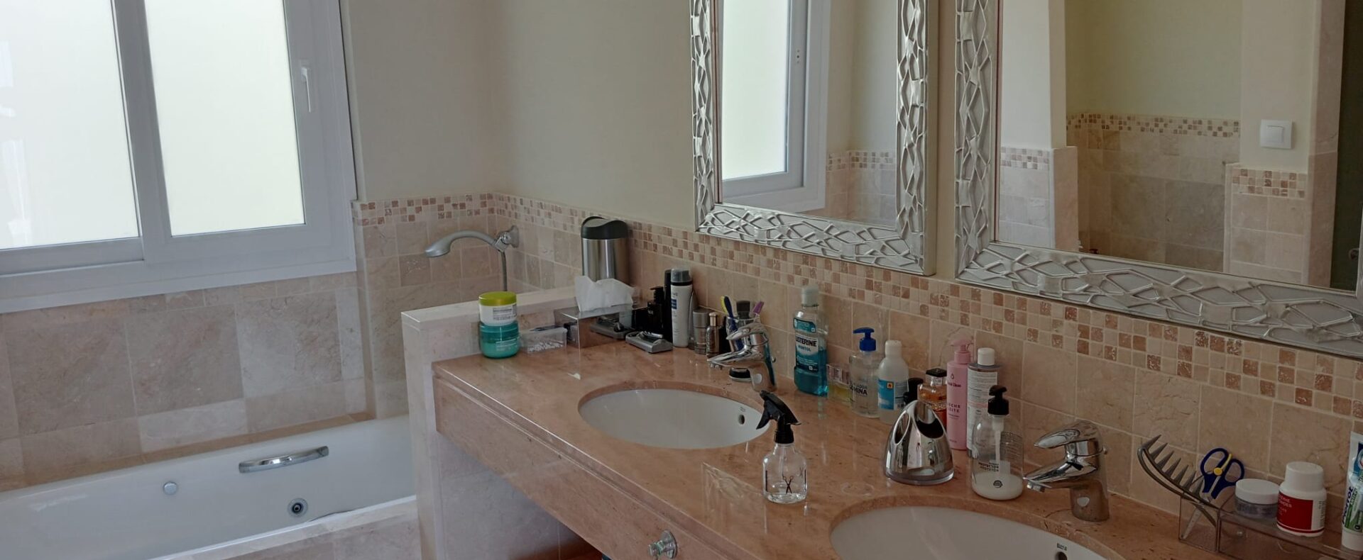 Główny apartament wyróżnia się dużymi wymiarami, elegancką kamizelką, prywatną łazienką z hydromasażem i bezpośrednim dostępem do prywatnego tarasu z nieskończonym widokiem na morze.