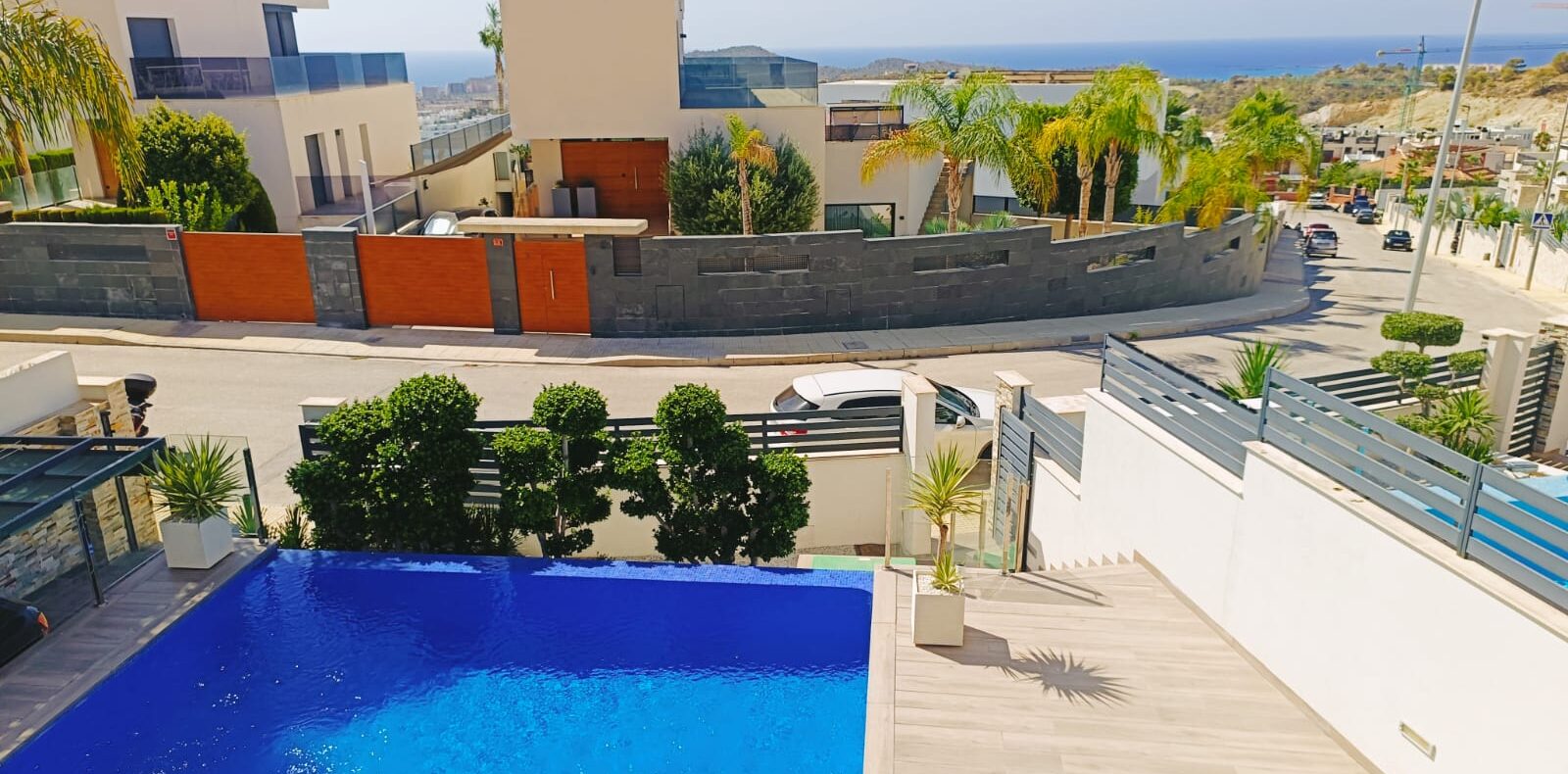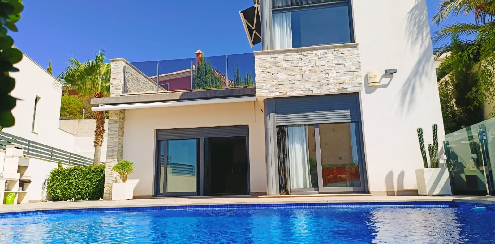 Ekskluzywna luksusowa willa w Finestrat ze spektakularnymi widokami na morze i góry, wyjątkowa nieruchomość, która łączy w sobie nowoczesny design, komfort i elegancję w jednym z najbardziej pożądanych obszarów Costa Blanca, rozmieszczona na dwóch piętrach plus piwnica, oferuje cztery przestronne sypialnie, cztery w pełni wyposażone łazienki, prywatne biuro idealne do pracy zdalnej i jasną część dzienną. z otwartą kuchnią z jadalnią i bezpośrednim dostępem do dużego tarasu na świeżym powietrzu cały dom został odnowiony z wysokiej jakości podłóg laminowanych i posiada ogrzewanie podłogowe dla maksymalnego komfortu przez cały rok obszar zewnętrzny jest prawdziwą oazą z basenem bez krawędzi wtapiającym się w horyzont drewniana sauna śródziemnomorski ogród z drzewami owocowymi, miejscem do grillowania i pergolą.zadaszony parking na dwa samochody wszystko zostało zaprojektowane tak, aby cieszyć się śródziemnomorskim stylem życia z całkowitą prywatnością i spokojem zaledwie kilka minut od plaż Benidorm i Villajoyosa Puig Campana Golf Club La Marina Shopping Center oraz z szybkim dostępem do autostrady AP 7 idealna willa dla tych, którzy cenią sobie jakość przyrody i widoki, które po prostu urzekają skontaktuj się z nami i odkryj dom, o którym zawsze marzyłeś. .